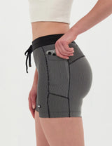 Made from our ultra-comfy Striped Cadence performance fabric, the Bandit 5" compression shorts ditch the front rise seam for a smooth fit. They come packed with two waterproof phone pockets on the sides and a sneaky zipper stash pocket at the center back.