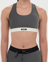 Bandit Women's Striped Cadence Run Bra - Black w/ Chalk