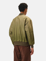 The Beams Plus MIL Flight Jacket in olive green features a dazzling iridescent twill pattern that gently fades across the body. This playful twist on the classic military flight jacket comes with slanted side pockets and contrasting ribbed cuffs, collar, and hem for extra flair.