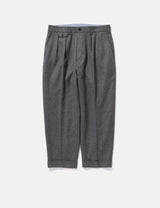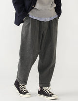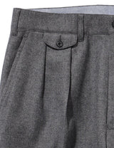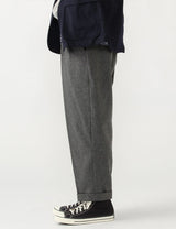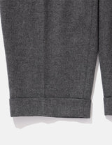 Introducing the Beams Plus 2 Pleats tapered flannel in grey: These trousers, a wool flannel take on the popular "Beams Plus 2-pleat Chino Trousers", have slightly thicker fabric and a relaxed stretch for maximum comfort.