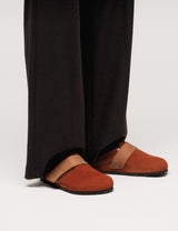 The Birkenstock Loma in rust brown draws inspiration from the timeless Boston style, featuring a sleek, compact design highlighted by a wide touch fastener. Its upper combines luxuriously soft suede that molds comfortably to your foot with premium nubuck leather for lasting quality and style.